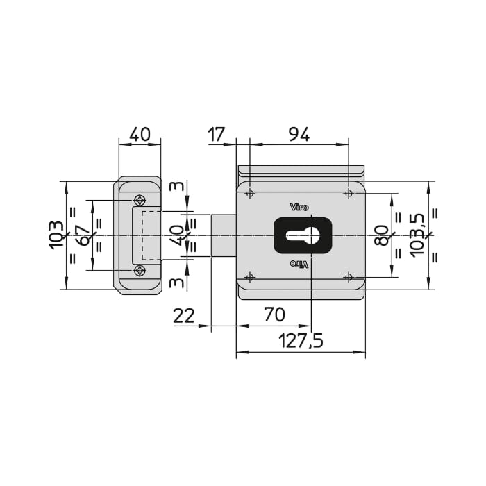 Cerradura eléctrica italiana, marca Viro. Horizontal V90.