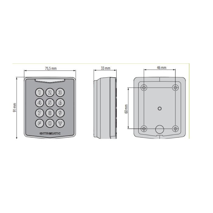 Frecuencia 433MHz. 4 códigos numéricos personalizados. Alcance de 50-